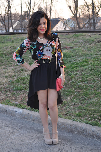 I was searching high and low (no pun intended) for a high low skirt. I found this one at Forever21 and fell in love with it. It was only $17. I decided to pair it with this floral tunic from H&M. It's similar to the coral one I wore last weekend but this one is sheer. As you can see I have been wearing a lot of florals! It's such a big trend for spring.