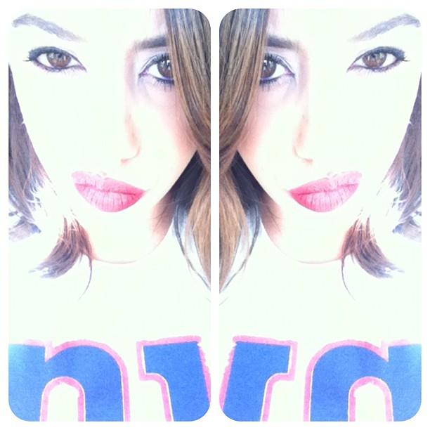 I have on a Giants shirt from Victorias Secret. I actually borrowed it from my sis. Didn't even know VS made these. It's so cute though. I just bought these new red skinnies from H&M the other day so they went perfect! They're just like the khaki ones I posted about last weekend and were only $12.95. I like these so much better than the ones I got from Target. The fit and style is so much better. I put on a red lip (russian red) and my black wedges. :)
